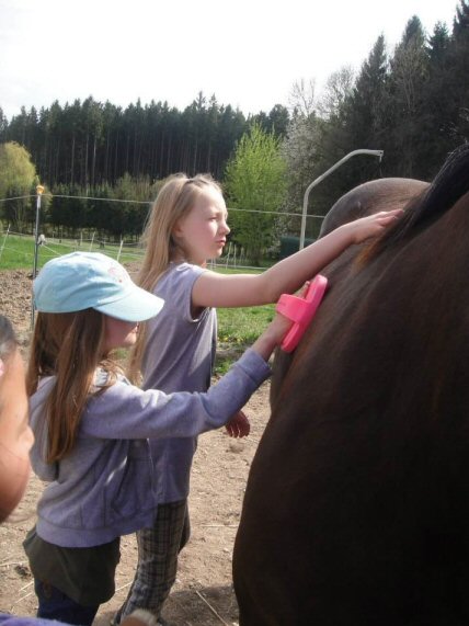 sich und zeigte uns dann, wie man ein Pferd richtig putzt. Da es Frühling war, verlor