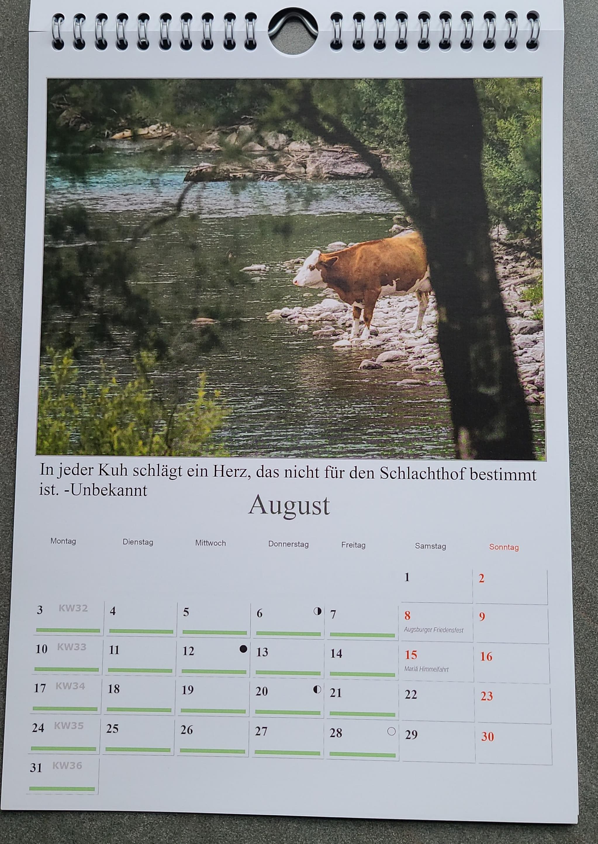 Mit wunderschönen Natur- und Tieraufnahmen und passenden Sprüchen ist unser Kalender nicht nur ein Blickfang für Zuhause, sondern auch eine kleine tägliche Erinnerung an Mitgefühl und Verantwortung gegenüber allen Lebewesen. 🌿